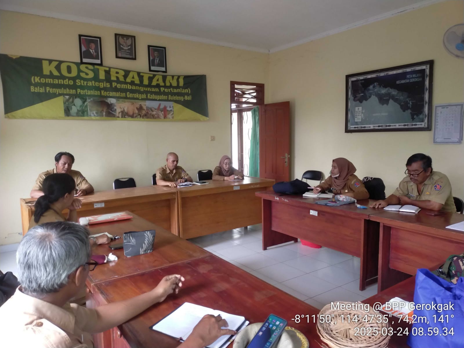Dalam rapat kali ini dipimpin oleh Koordinator Petugas Pertanian Kec. Gerokgak serta dihadiri oleh seluruh Penyuluh Pertanian Lapangan, Petugas Pengendali Organisme Tumbuhan (POPT), Petugas Data, dan Petugas Medik Veteriner.