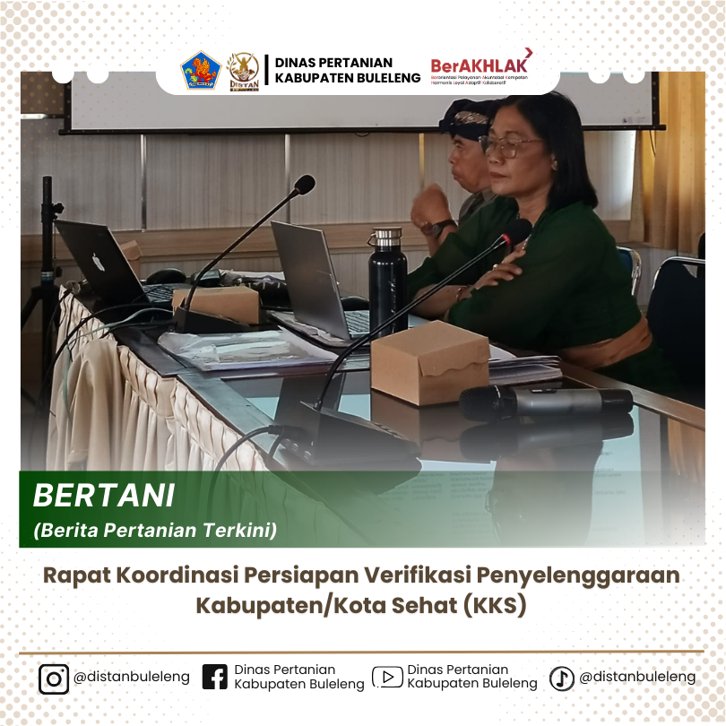 Pada hari ini Kamis 22 Mei 2025 Dinas Pertanian melalui Bidang Peternakan dan Kesehatan Hewan Kabupaten Buleleng menghadiri Rapat Koordinasi Persiapan Verifikasi Penyelenggaraan KKS yang bertempat di Aula Dinas Kesehatan Kabupaten Buleleng. Program ini melibatkan kolaborasi antara pemda ,masyarakat dan sektor swasta dalam menerapkan berbagai tatanan yang mendukung kesehatan masyarakat secara menyeluruh.
