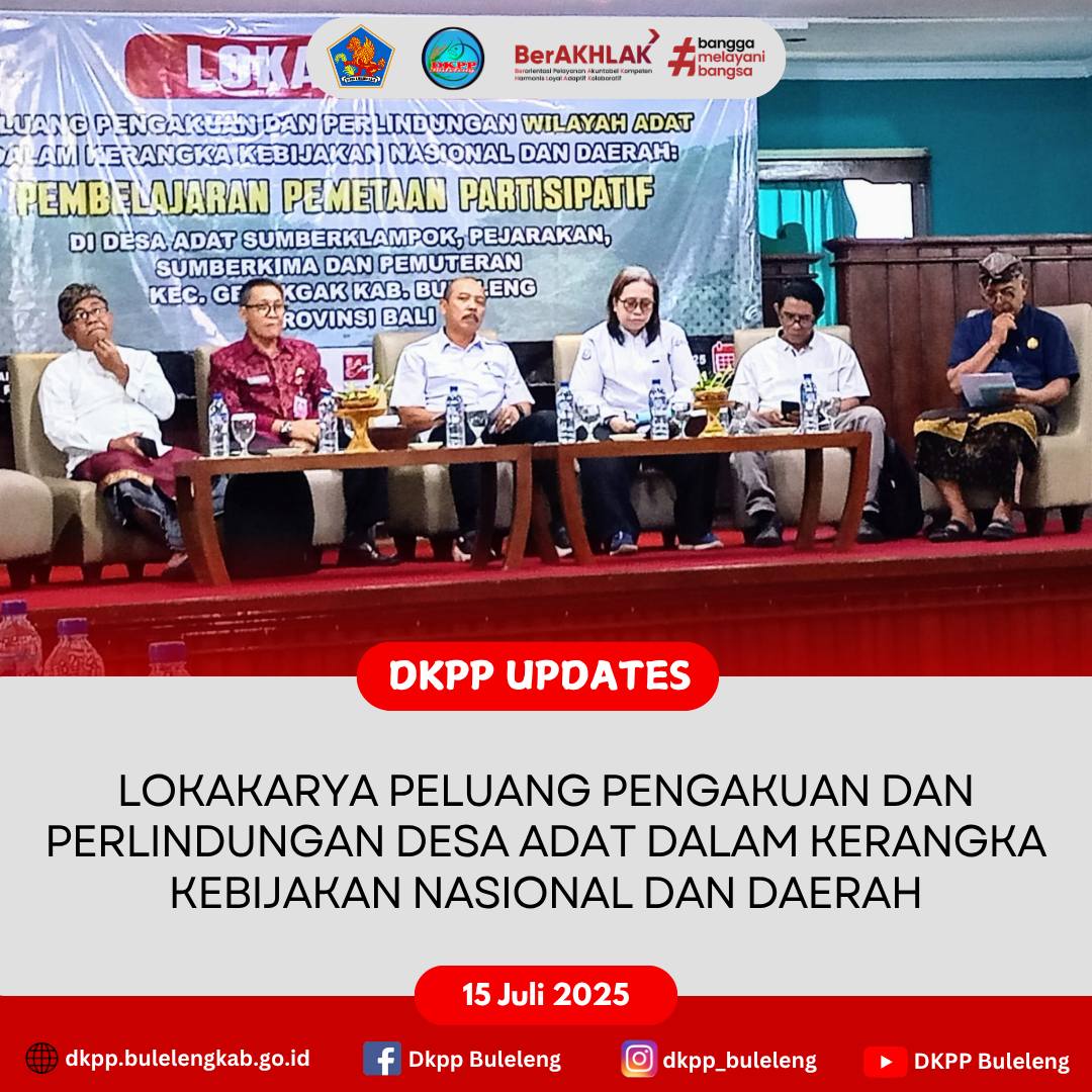 Selasa, 15 Juli 2025 - Sekretaris Dinas Ketahanan Pangan dan Perikanan Kabupaten Buleleng Ariston Adhi Pamungkas, S.P., M. Env Man. menghadiri lokakarya yang dilaksanakan oleh Lembaga Garis Pantai Nusantara dan Jaringan Kerja Pemetaan Partisipatif di Bali Taman, Singaraja. Narasumber kegiatan berasal dari Kementerian ATR/BPN, Kementerian KP, MDA Provinsi Bali, dan Setnas JKPP. Lokakarya di buka oleh Asisten I Sekda Buleleng, dihadiri SKPD Pemkab terkait, Camat Gerokgak, Perbekel dan Bendesa Adat 4 desa, SKPD terkait Pemprov Bali, dan Instansi Vertikal terkait.