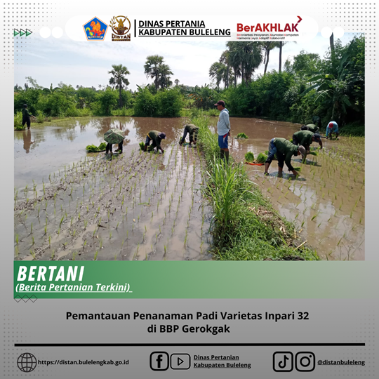 Kamis, 29 Januari 2026, telah dilaksanakan kegiatan pemantauan penanaman bibit padi varietas Inpari 32 di Balai Benih Pembantu (BBP) Gerokgak. Penanaman dilakukan menggunakan sistem konvensional atau sistem tanam biasa dengan total luas lahan 7 hektare.