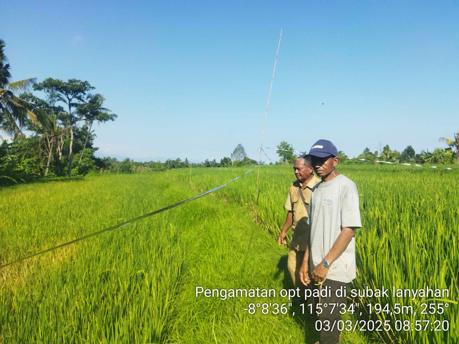 Senin 3 Maret 2025 – Petugas Pengendali Organisme Pengganggu Tumbuhan (POPT) Kecamatan Buleleng serta PPL Wilbin Desa Petandakan melakukan pengamatan terhadap serangan wereng batang coklat (Nilaparvata lugens) di Subak Lanyahan, Desa Petandakan, Kecamatan Buleleng. Pengamatan ini dilakukan untuk memantau perkembangan serangan OPT yang dapat merugikan hasil pertanian padi di Subak Lanyahan.