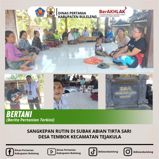Pada Hari Rabu, 15 Oktober 2025 PPL Desa Tembok mengikuti Sangkepan Rutin di yang dilaksanakan di balai Subak Abian Tirta Sari Desa Tembok. Kegiatan ini dilaksanakan secara rutin bertepatan dengan Hari Buda Wage setiap bulannya dan diikuti oleh penggurus dan krama subak.