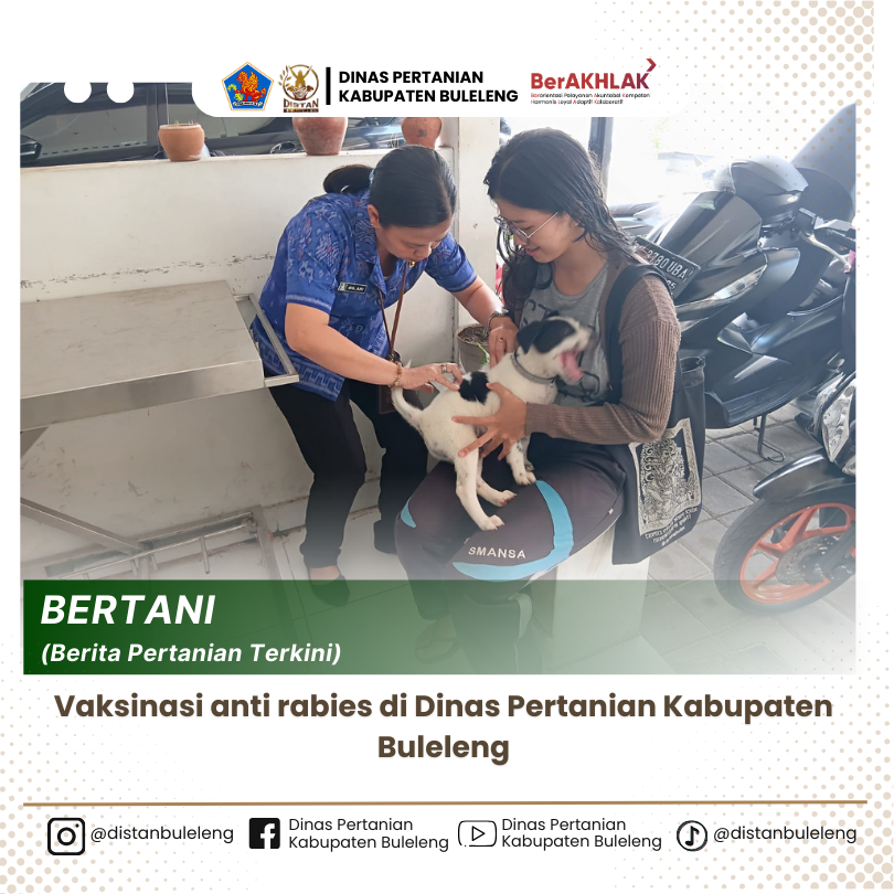 Pada Hari ini, Selasa 8 April 2025, Dalam rangka meningkatkan kewaspadaan dan melindungi masyarakat dari risiko rabies, Dinas Pertanian Kabupaten Buleleng melalui Bidang Peternakan dan Kesehatan Hewan melaksanakan vaksinasi rabies secara stasioner di kantor dinas. Kegiatan ini diadakan mulai hari senin sampai dengan hari jumat , dan terbuka untuk seluruh masyarakat yang memiliki hewan peliharaan, terutama anjing, kucing, dan hewan lain yang berpotensi menjadi pembawa virus rabies.