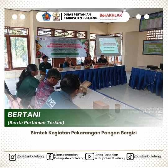 Selasa, 16 September 2025 melalui Bidang Hortikultura melaksanakan Bimtek Kegiatan Pekarangan Pangan Bergizi. Bimtek dibuka oleh Kepala Bidang Hortikultura dan dihadiri oleh JF OPT, JF PMHP, PP Ahli Muda dan Pertama, Penata Layanan Operasional lingkup Bidang Hortikultura, Koordinator Kec. Gerokgak, PPL Wilbin yang menjadi pendamping penerima kegiatan dan 14 kelompok tani perwakilan masing-masing 2 orang.