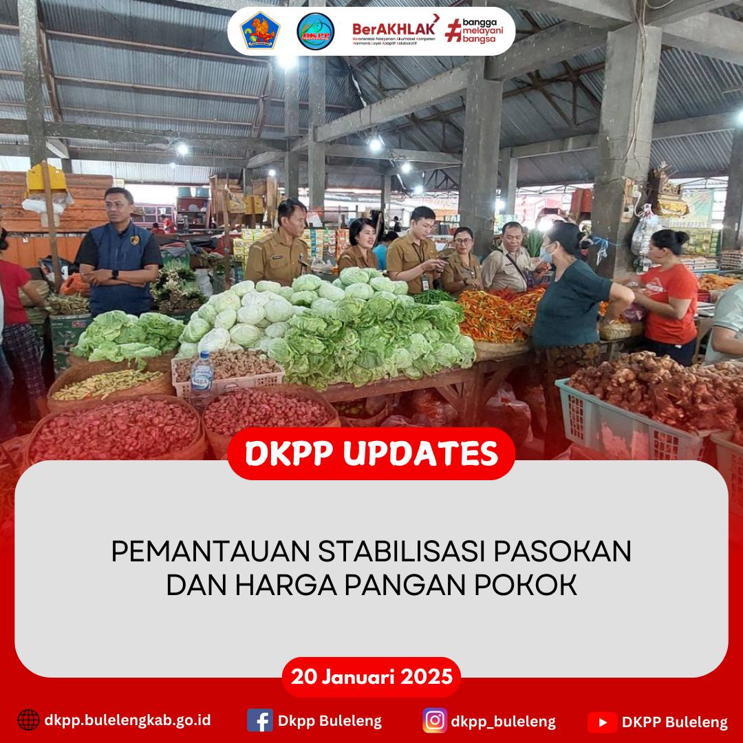 Senin, 20 Januari 2025, Dinas Ketahanan Pangan dan Perikanan (DKPP) Kabupaten Buleleng bersama instansi terkait yang tergabung dalam Tim Satgas Ketahanan Pangan Buleleng melakukan Pemantauan Stabilisasi Pasokan dan Harga Pangan Pokok pada pasar pendukung dan gerai perumda, dalam hal ini Pasar Anyar, Pasar Banyuasri, dan Gerai Perumda Swatantra - Pasar Anyar.