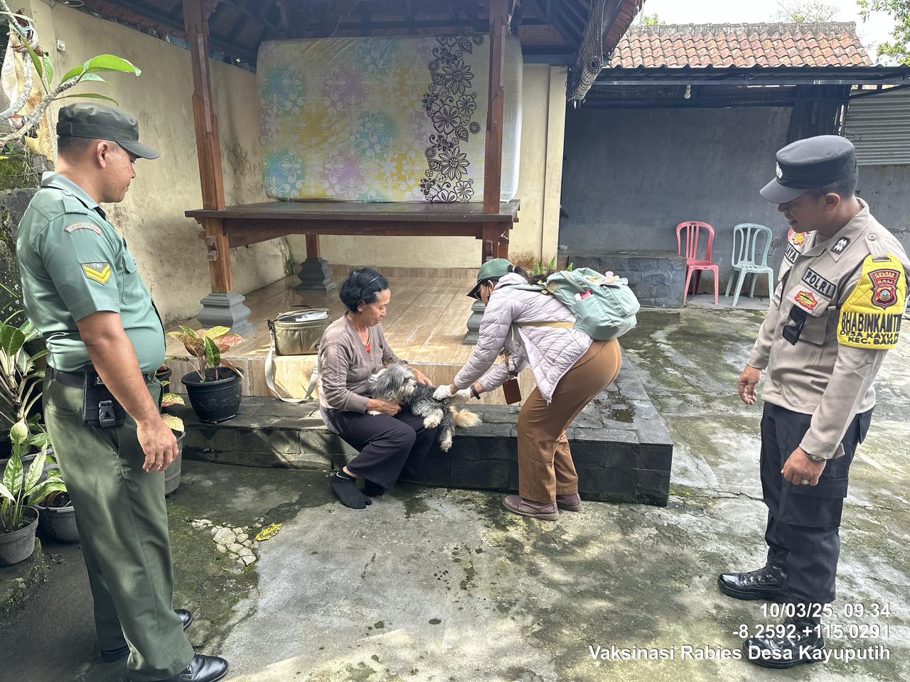 Senin, 10 Maret 2025 tim vaksinasi yang terdiri atas dokter hewan petugas Puskeswan Kecamatan Banjar dan PPL (Penyuluh Pertanian Lapang) melaksanakan pelayanan vaksinasi rabies di Desa Kayuputih Banjar Dinas Desa. Sebelumnya tim vaksinasi telah berkoordinasi dengan Perbekel Desa Kayuputih agar dapat menyebarluaskan informasi terkait adanya vaksinasi massal di desa. Didampingi oleh Babinsa dan Kepala Dusun Banjar Dinas Desa pelayanan vaksinasi dilakukan dengan menyasar masyarakat yang memiliki HPR (hewan penular rabies), seperti anjing, kucing, dan kera.
