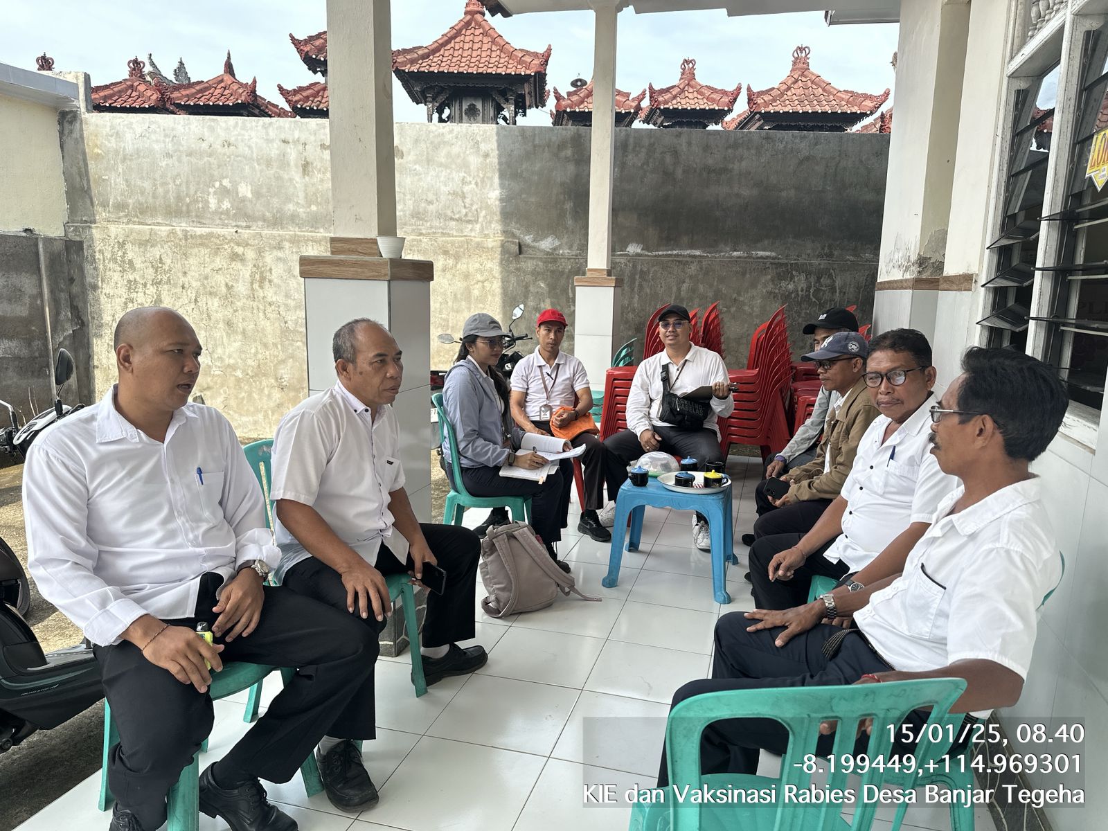 Rabu, 15 Januari 2025, tim vaksinasi rabies yang terdiri atas dokter hewan petugas Puskeswan Kecamatan Banjar dan PPL (Penyuluh Pertanian Lapang) melaksanakan pelayanan vaksinasi rabies di Banjar Dinas Tengah dan Banjar Dinas Abian di Desa Banjar Tegeha. Sebelumnya tim vaksinasi telah berkoordinasi dengan Perbekel Desa Banjar Tegeha agar dapat menyebarluaskan informasi terkait adanya vaksinasi massal di desa. Pelayanan vaksinasi dilakukan dengan menyasar masyarakat yang memiliki HPR (hewan penular rabies), seperti anjing, kucing, dan kera. Vaksinasi rabies massal di Desa Banjar Tegeha akan dilaksanakan selama 2 hari, yaitu pada tanggal 15 dan 16 Januari 2025.