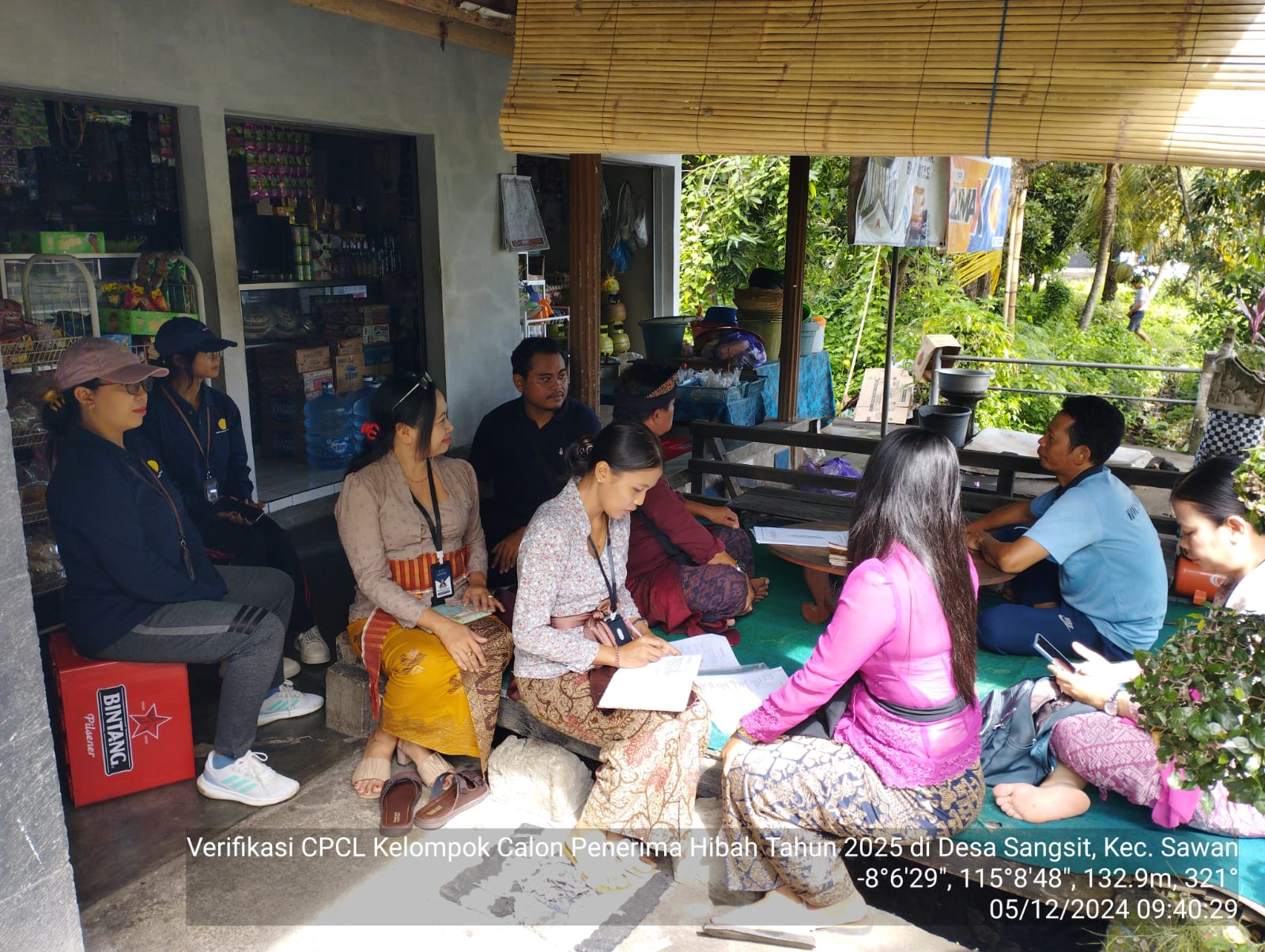 Proses Verifikasi yang dihadiri oleh pengurus kelompok didampingi oleh PPL Wilayah Binaan Desa Sangsit dan Dokter Hewan Puskeswan Kecamatan Sawan diawali dengan pemaparan proposal permohonan hibah yang telah diajukan oleh pengurus kelompok.