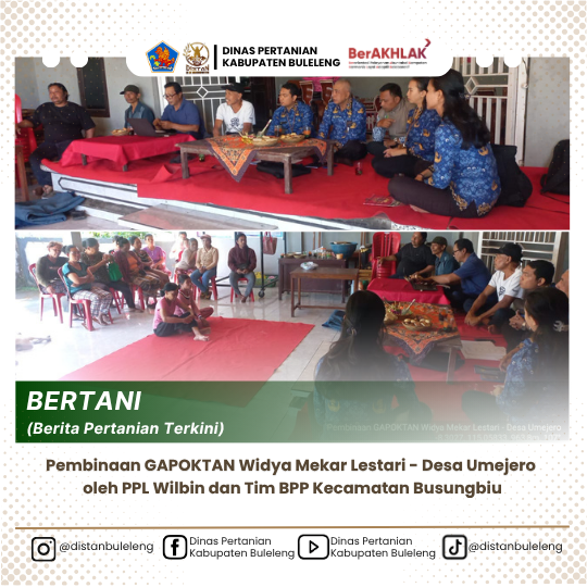Kegiatan pagi ini dilaksanakan oleh PPL Wilbin Desa Umejero (I Kadek Wahyu), rekan penyuluh dan rekan dokter hewan menghadiri pertemuan GAPOKTAN Widya Mekar Lestari yang diadakan bersamaan dengan pertemuan KWT. Widya Mekar Mandiri berlokasi di Banjar Cemara - Desa Umejero. Kegiatan hari ini bertujuan untuk melakukan pembinaan kepada Gapoktan dalam kelengkapan administrasi dan pertanggung jawaban keuangan yang telah berkembang di masing - masing kelompok. Rabu, 1 Oktober 2025