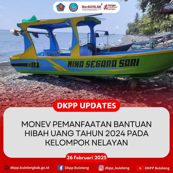 Rabu, 26 Februari 2025 - Dinas Ketahanan Pangan dan Perikanan (DKPP) Kabupaten Buleleng melalui Bidang Produksi Perikanan melakukan monitoring dan evaluasi (monev) Pemanfaatan Bantuan Hibah Uang Tahun 2024 pada Nelayan KUB (Kelompok Usaha Bersama) Mina Segara Sari, Desa Pacung, Kecamatan Tejakula.