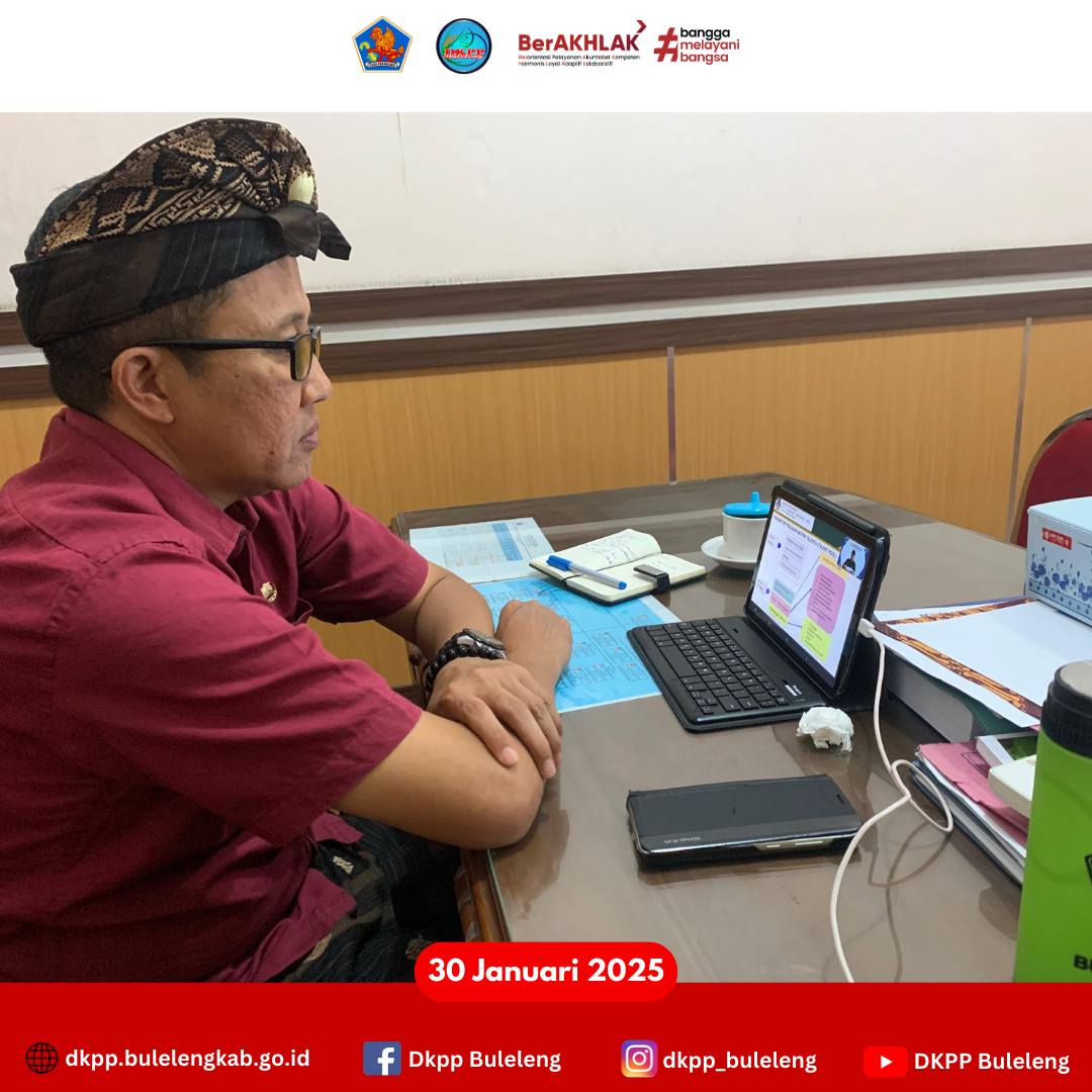 Kamis, 30 Januari 2025, Kepala Dinas Ketahanan Pangan dan Perikanan (DKPP) Kabupaten Buleleng I Gede Putra Aryana, S.Sos., MAP. bersama jajaran mengikuti Webinar KORPRI Menyapa ASN dengan tema "Meritokrasi sebagai Perlindungan Karir ASN" yang diselenggarakan Dewan Pengurus KORPRI Nasional. Webinar ini melibatkan narasumber dari Ketua Umum DP KORPRI Nasional (Prof. Dr. Zudan Arif Fakrulloh, SH., MH), Kepala BKPSDM Provinsi Bali (Ir. Ketut Lihadnyana, M.M.A), dan Deputi Bidang Pembinaan Penyelenggaraan Manajemen ASN - BKN.