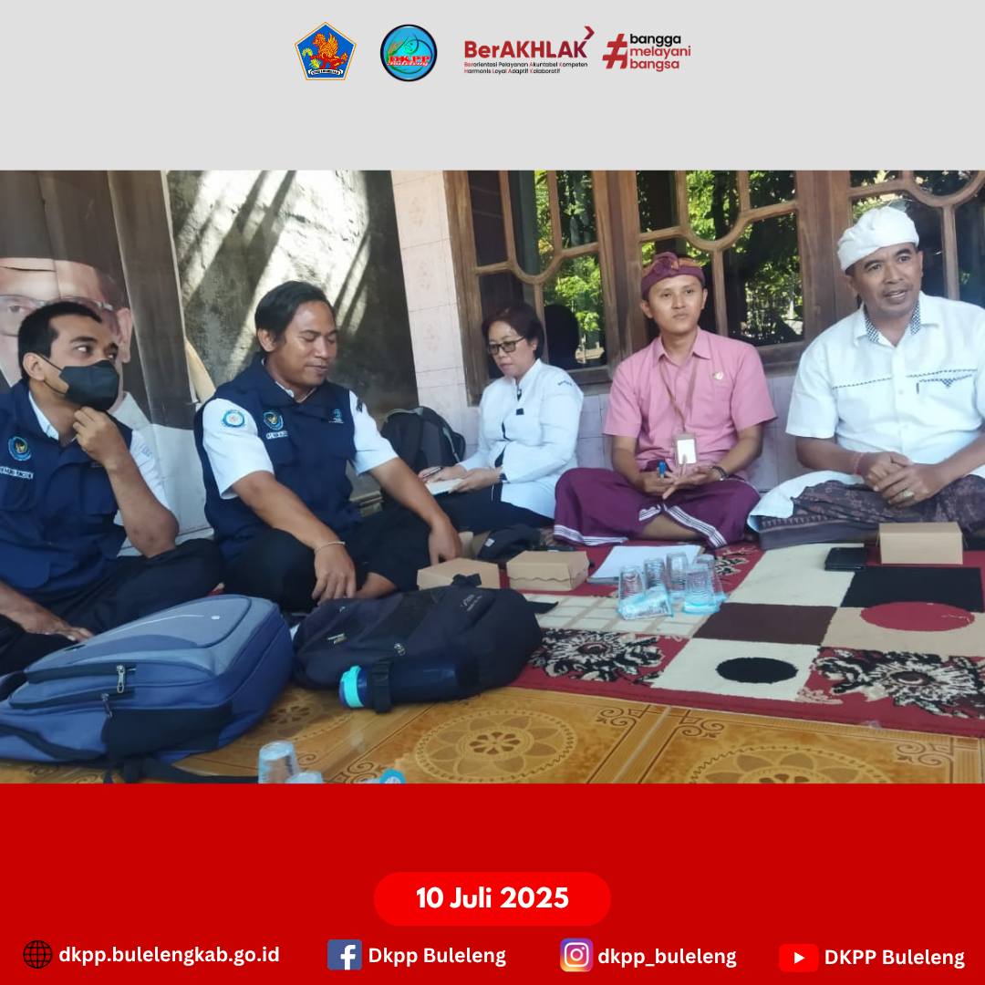 Kamis, 10 Juli 2025 - Dinas Ketahanan Pangan dan Perikanan (DKPP) Kabupaten Buleleng melaksanakan Pembinaan Pelaku Usaha Perikanan di Kelompok Usaha Bersama (KUB) Nusantara Laut Desa Banyupoh. Kegiatan dihadiri Pejabat terkait di bidang Perikanan, Penyuluh Perikanan Buleleng, serta para pengurus dan anggota KUB.