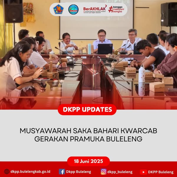 Rabu, 18 Juni 2025 - Dinas Ketahanan Pangan dan Perikanan (DKPP) Kabupaten Buleleng selaku pangkalan Satuan Karya Pramuka (Saka) Bahari Kwartir Cabang Gerakan Pramuka Buleleng menggelar Musyawarah Saka Bahari dalam rangka persiapan pemilihan Dewan Saka Bahari dan pelaksanaan kegiatan rutin kedepannya. Musyawarah dipimpin oleh Sekdis DKPP Buleleng Ariston Adhi Pamungkas, S.P., M. Env Man., selaku Ketua Saka Bahari Kwarcab Buleleng, didampingi Pimpinan Saka Bahari yaitu Sekretaris dan Instruktur, serta dihadiri para Pamong dan Anggota Saka.
