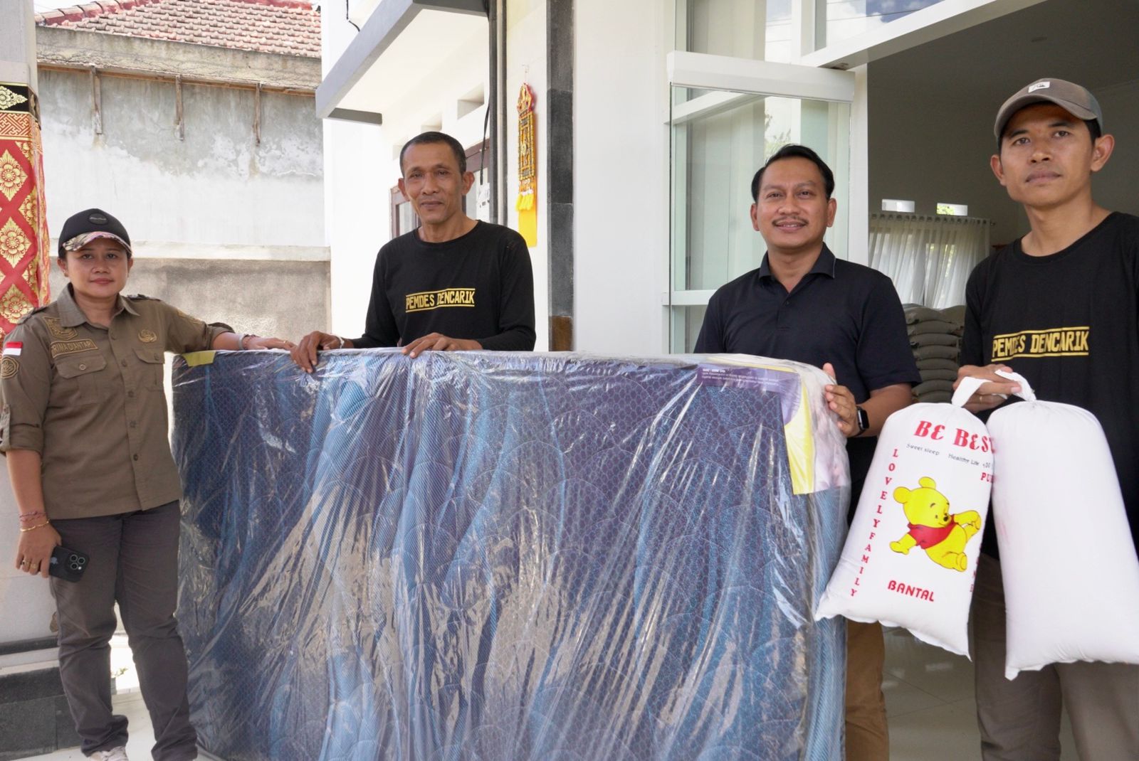 Dalam kegiatan tersebut, Sekretaris Dinas Pertanian, Ketahanan Pangan dan Perikanan Kabupaten Buleleng secara langsung menyerahkan bantuan berupa kasur dan kompor yang selanjutnya akan didistribusikan kepada warga terdampak melalui pemerintah desa setempat. Bantuan kasur diberikan untuk membantu masyarakat memenuhi kebutuhan tempat istirahat yang layak, mengingat sebagian warga mengalami kerusakan pada tempat tinggal serta kehilangan sejumlah perlengkapan rumah tangga akibat terjangan banjir. Sementara itu, bantuan kompor diberikan guna mendukung kebutuhan masyarakat dalam memasak dan menyiapkan makanan bagi keluarga selama masa pemulihan pascabencana, sehingga kebutuhan pangan rumah tangga tetap dapat terpenuhi.