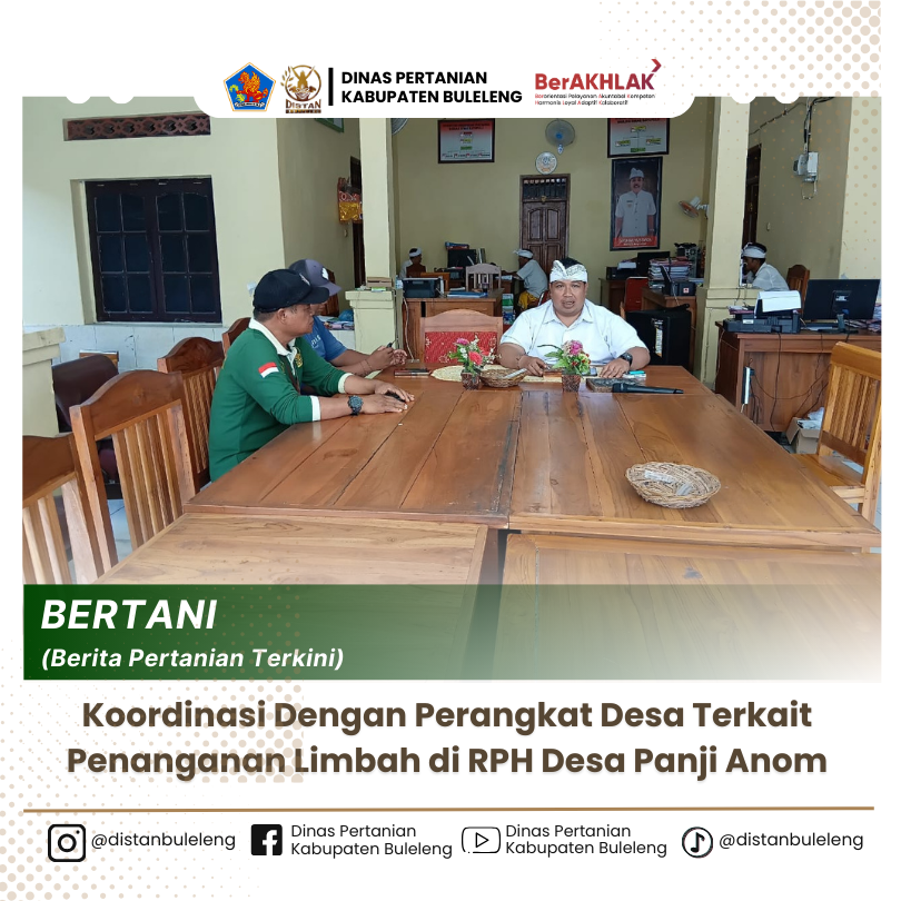 Jumat, 11 April 2025, Dinas Pertanian Kabupaten Buleleng melalui Bidang Peternakan dan Kesehatan Hewan menindaklanjuti surat yang disampaikan oleh Pemerintah Desa Panji Anom, Kecamatan Sukasada, terkait aduan masyarakat mengenai pencemaran limbah yang diduga berasal dari aktivitas rumah potong hewan (RPH) di Desa Panji Anom. Limbah yang tidak dikelola dengan benar dapat menimbulkan bau yang tidak sedap ,mencemari lingkungan bahkan menyebarkan penyakit. Oleh karena itu pengolahan limbah harus dilakukan sesuai standar dan regulasi yang berlaku.