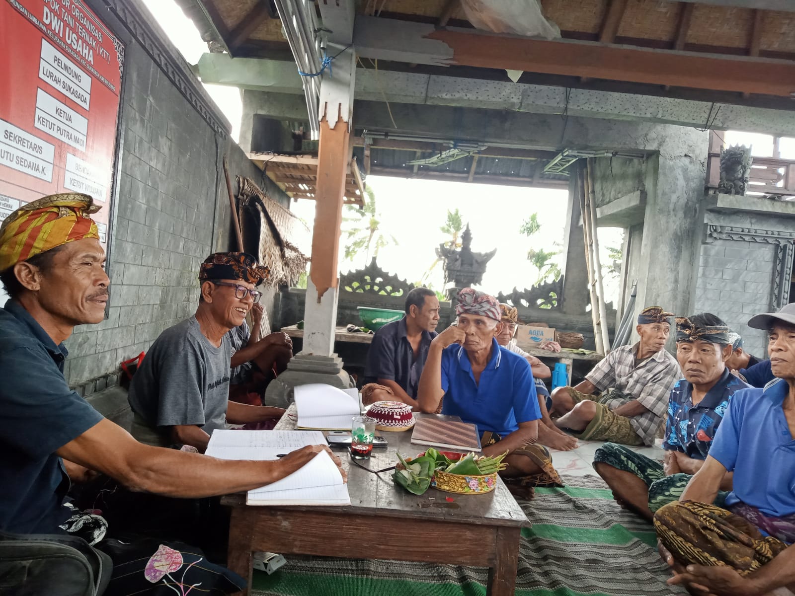 Kegiatan sangkep ini dilaksanakan secara rutin setiap satu bulan sekali oleh anggota dan pengurus subak. Dengan adanya kegiatan sangkep diharapkan antara pengurus, anggota dan petugas menjalin komunikasi dan koordinasi dengan baik sehingga permasalahan-permasalahan yang ditemui di tingkat lapangan dapat diselesaikan secara musyawarah.