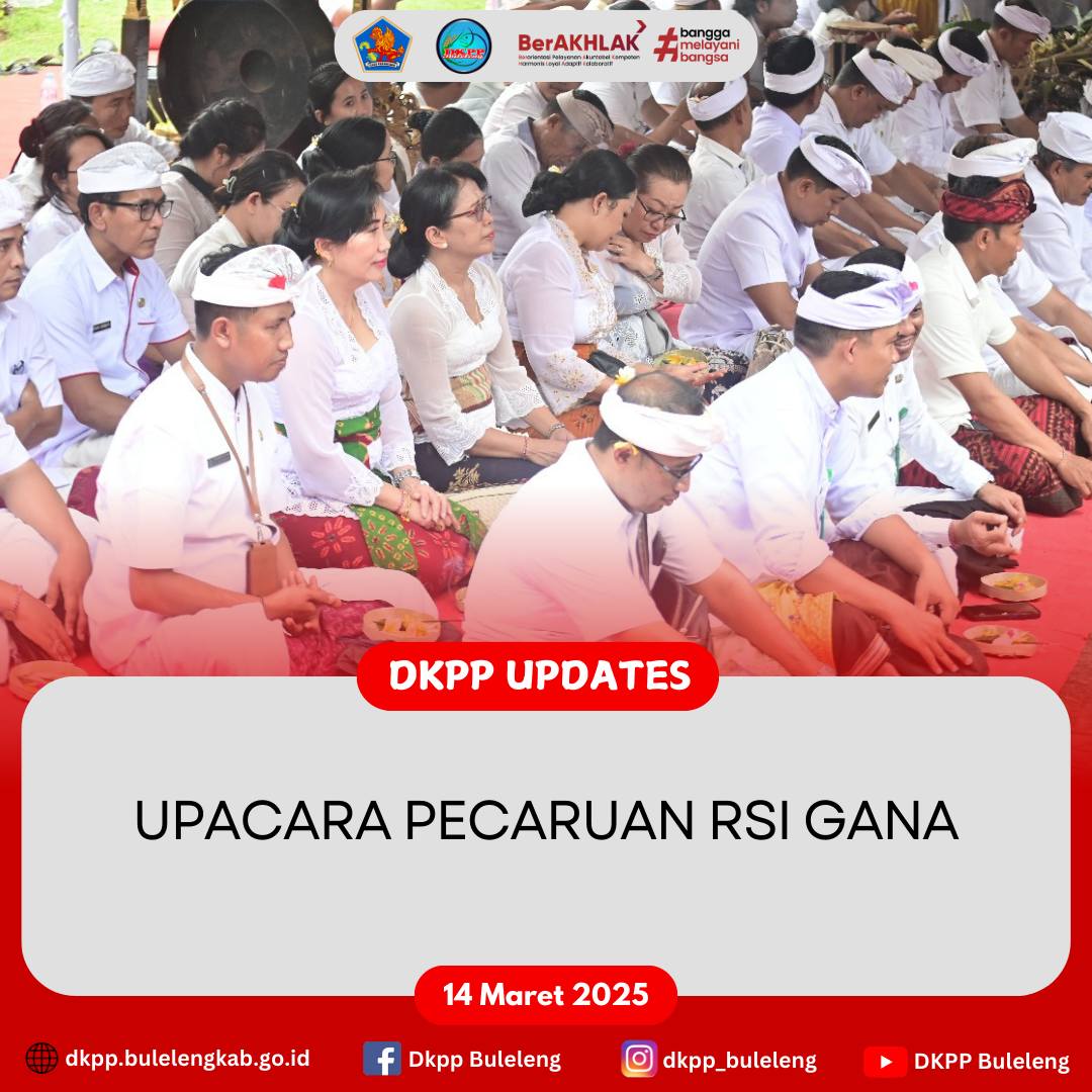 Sukra, 14 Maret 2025 - Kepala Dinas Ketahanan Pangan dan Perikanan (DKPP) Kabupaten Buleleng I Gede Putra Aryana, S.Sos., MAP. menghadiri Upacara Pecaruan Rsi Gana bertempat di Rumah Jabatan Bupati Buleleng yang juga bertepatan dengan Rahina Purnama Sasih Kesanga.