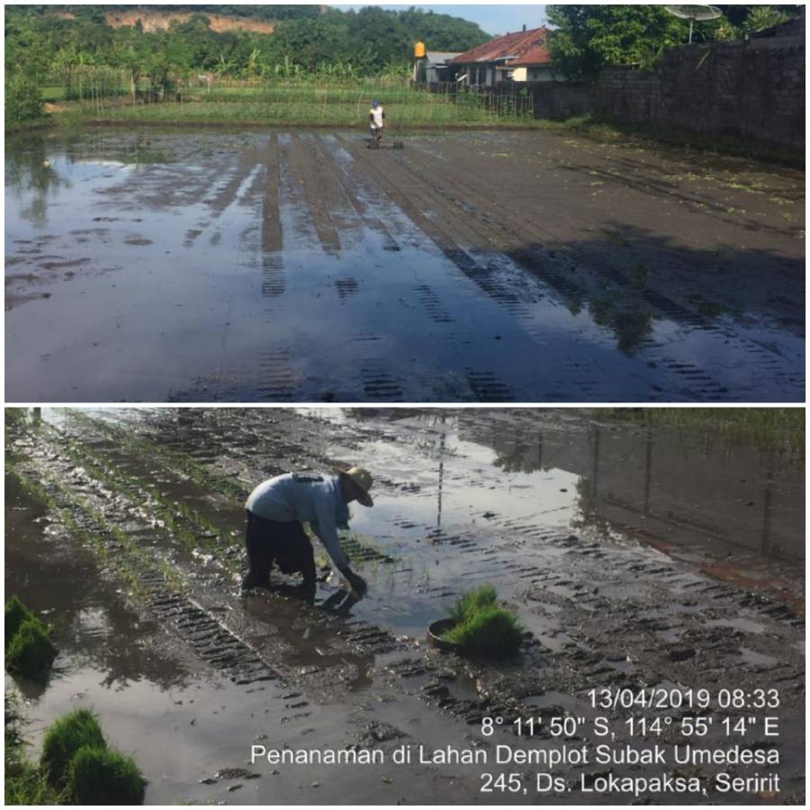 Kecamatan Seririt, khususnya wilayah Subak Umedesa 245, Desa Lokapaksa untuk tahun 2019 mendapat kegiatan demonstrasi plot (demplot) untuk budidaya tanaman padi sawah seluas 1,5 ha. Untuk penanaman di lahan demplot sudah dilaksanakan pada hari Sabtu (13/4/2019) oleh para petani yang mendapat kegiatan tersebut. Adapun saprodi yang diperoleh untuk kegiatan demplot ini yaitu benih varietas inpari 43 (40 kg), pupuk urea (300 kg), pupuk phonska plus (225 kg), serta agensia pengendali hayati (APH).