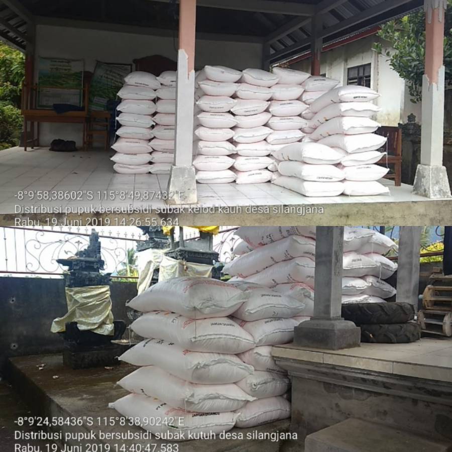 Penanaman padi di subak sedesa silangjana pada bulan juni sudah sebagian besar dilakukan. Dari 5 subak di silangjana sudah sebagian besar melaksanakan penanaman padi meskipun ada beberapa luasan lahan yang belum tertanam. Umur padi di desa silangjana pun berpariasi ada yang sudah mencapai umur 30 hst dan ada juga yang berumur 7 hst. Dengan demikian kebutuhan pupuk sudah diperlukan untuk mendukung pertumbuhan tanaman padi. Dari 5 subak di desa silangjana 2 subak diantaranya yaitu subak kutuh dan subak kelod kauh sudah dilakukan distribusi pupuk bersubsidi yaitu pupuk urea dan NPK dari pengecer pupuk UD. Sudarma Tani yang langsung diterima oleh kelian subak masing masing subak. Tepatnya pada hari rabu, 19 juni 2019 pupuk tersebut sudah di distribusikan dan di letakkan di bali subak masing- masing yang kemudian sudah dibagikan ke masing-masing anggota subak. Semoga dengan sudah dicairkannya pupuk bersubsidi tersebut dapat mencukupi kebutuhan unsur hara tanaman padi. Dan semoga dapat meningkatkan produktivitas tanaman padi.