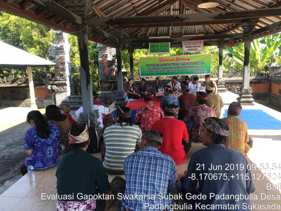 Hari ini jumat 21 juni 2019 di tengah tengah hamparan sawah di balai subak gede padangbulia Desa padangbulia dilakukan kegiatan evaluasi Gapoktan SWAKARSA subak gede Padangbulia oleh tim evaluasi Kabupaten Buleleng. Selain tim evaluasi Kabupaten acara ini juga dihadiri oleh perbekel desa padangbulia, babinsa desa padangbulia, pengurus Gapoktan Swakarsa beserta anggota dan juga didampingi oleh teman teman BPP Sukasada termasuk juga Koord BPP Sukasada dan ppl desa padangbulia.