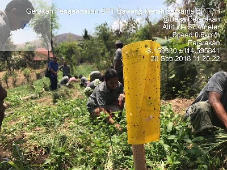 Kamis, 20 September 2018 berlangsung kegiatan gerakan pengendalian OPT (Organisme Pengganggu Tumbuhan) pada bawang merah di Desa Pejarakan Kelompok Tani Karya Seraya Sejati bersama BPTPH (Balai Perlindungan Tanaman Pangan dan Hortikultura). Pada kegiatan ini petani diarahkan untuk menjadi manajer pada lahannya sendiri. Manajer yang dimaksud yaitu mampu mengelola dan memonitoring lahannya sehingga meminimalisir serangan OPT.