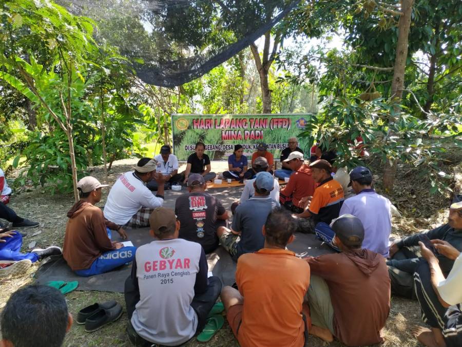 Jumat 18 Oktober 2019, Dinas Pertanian Kabupaten Buleleng melalui Bidang Tanaman Pangan melaksanakan Hari Lapang Tani (FFD) kegiatan Demplot Mina Padi di Subak Gebang, Desa Subuk, Kecamatan Busungbiu. Demplot ini merupakan salah satu kegiatan Pengembangan Intensifikasi dan Penerapan Teknologi Budidaya Tanaman Pangan yang tujuannya untuk meningkatkan kemampuan petani/kelompok tani dalam penerapan berbagai teknologi usaha tani melalui penggunaan input produksi yang efisien yang pada akhirnya akan mampu meningkatkan produksi dan produktivitas tanaman pangan serta meningkatkan pendapatan masyarakat petani. Kegiatan tersebut dihadiri oleh Dinas Pertanian Kabupaten Buleleng (Bidang TP), PPL Wilbin, Koordinator beserta staf BPP Busungbiu, Dinas Perikanan Kabupaten Buleleng dan anggota Subak Gebang.