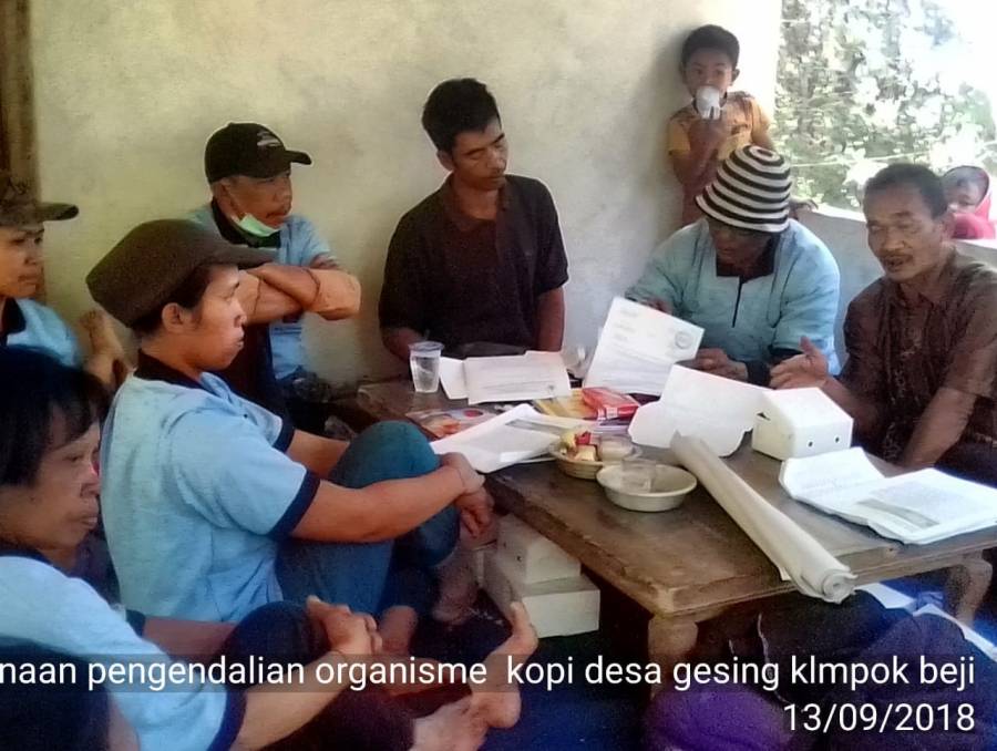 Pada hari Kamis Tanggal 13 September 2018 telah dilaksanakan Pelatihan Pengendalian Organisme Pengganggu Tanaman (OPT) Kopi oleh Bidang Perkebunan Dinas Pertanian Kabupaten Buleleng yang dihadiri oleh petugas UML Sukasada, Koordinator PPL Banjar dan PPL wilbin setempat dengan jumlah peserta 25 orang petani di Kelompok Tani Tempek Beji Desa Gesing Kecamatan Banjar.