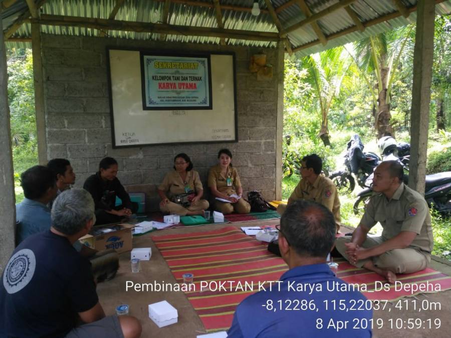 Kegiatan Pembinaan Pra Lomba POKTAN Ternak Sapi di KTT Karya Utama, Banjar Dinas Pengubugan, Desa Depeha yang dilaksanakan pada Hari Senin, 08 April 2019 oleh Kabid Penyuluh, Koordinator BPP Kubutambahan, PPL Wilbin Depeha, dan Kelompok tani ternak Karya Utama.
