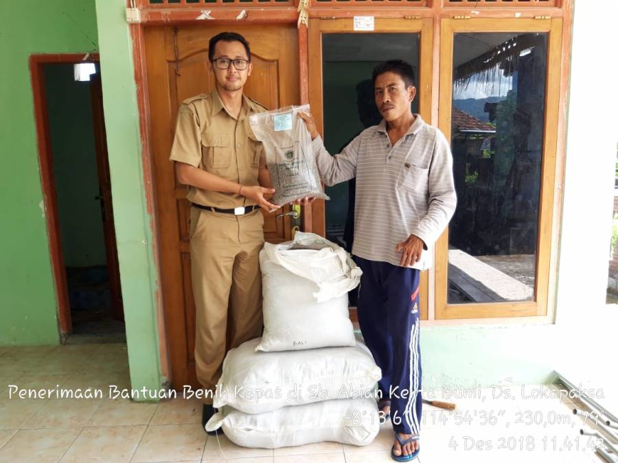 Pada hari Selasa (4/12/2018), telah dilaksanakan kegiatan penerimaan bantuan benih kapas di Subak Abian Kerta Bumi, Desa Lokapaksa, Kecamatan Seririt. Adapun jumlah bantuan benih kapas yang disalurkan untuk Subak Abian Kerta Bumi sebesar 90 kg. Benih tersebut nantinya akan digunakan untuk menunjang kegiatan usaha tani komoditi kapas di subak tersebut, dimana rencananya untuk Subak Abian Kerta Bumi mulai melakukan penanaman pada bulan Januari 2019 dengan luas tanam 30 ha. Melalui bantuan saprodi pertanian berupa benih ini diharapkan dapat semakin meningkatkan produksi panen kapas di Subak Abian Kerta Bumi.