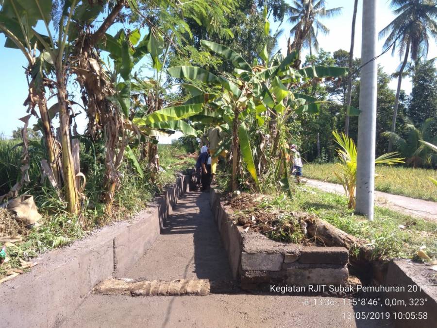 Senin, 13 Mei 2019 Subak Pemuhunan merupakan Subak yang ada di Wilayah Desa Alasangker, Kecamatan Buleleng, yang memiliki luas lahan sawah 21 ha. Tanaman yang dibudidayakan adalah tanaman padi. Pentingnya saluran irigasi yang baik untuk menunjang budidaya tanaman padi, maka Kegiatan Rehabilitasi Jaringan Irigasi Tersier perlu untuk dilakukan, sehingga dapat mengurangi kehilangan air, agar dapat mencukupi kebutuhan pertanaman padi. Kegiatan Rehabilitasi Jaringan Irigasi Tersier ini dilakukan oleh pengurus Subak, pengurus UPKK dan anggota Subak Pemuhunan. Rehabilitasi Jaringan Irigasi ini menggunakan pasangan beton cor tiga sisi, dengan target panjang 116,56 meter. Pada bulan Mei cuaca cukup mendukung, dan juga Tanaman Padi yang dibudidayakan di Subak Pemuhunan sudah akan memasuki masa panen, sehingga dapat dilakukan Kegiatan Rehabilitasi Jaringan Irigasi Tersier. Dalam Kegiatan ini dilakukan sistem pengalihan aliran air, agar kegiatan rehabilitasi jaringan irigasi ini berjalan dengan lancar.