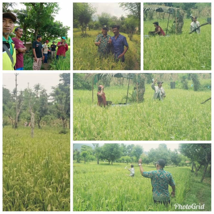 Kegiatan BPP Gerokgak, jumat 5/4/2019 menerima kunjungan petani subak abian Amerta Sari desa pemuteran utk melihat perkembangan tanaman padi gogo. Petani diantar ppl wilbin desa pemuteran di terima dikelompok tani Putra Harapankita desa sanggalangit. Kegiatan ini dipadukan dengan persiapan panen padi gogo di klp ini. Tahun anggaran 2018. Desa sanggalangit khususnya kelompok tani IV dan Putra harapan kita menerima kegiatan pengembangan pafi gogo seluas 20ha, mading masing klp. Seluas 10 ha. Penanaman di bulan Desember 2018 saat musim hujan. Perkembangan tanamancukup baik. Utk itu petani yg melihat cukup antusias untuk pengembanganpadi gogo di wilayah desa pemuteran. Panen padi gogo ini direncanakan kamis, 11/4/2019 rencananya dengan mengundang bidang tanaman pangan, pihak desa dan semua ppl di kecamatan Gerokgak. Selanjutnya utk bergairahnya petani, menurut kabid Tanaman Pangan hasil konsultasi koordinator BPP Gerokgak, agar kedepan mengajukan usulan berupa jaring, untuk mengantisipasi hama burung.