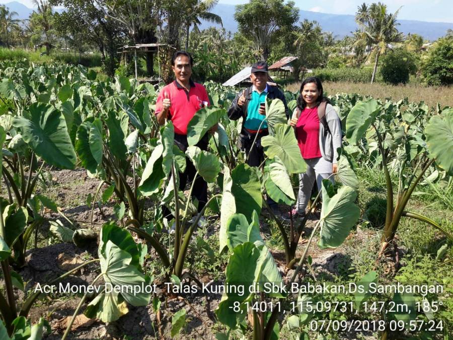 Acara Monev Demplot (Demontrasi Plot/petak percontohan) Talas Kuning yang dilaksanakan di Subak Babakan Sambangan, Desa Sambangan Kecamatan Sukasada, Jumat (7/9/18).