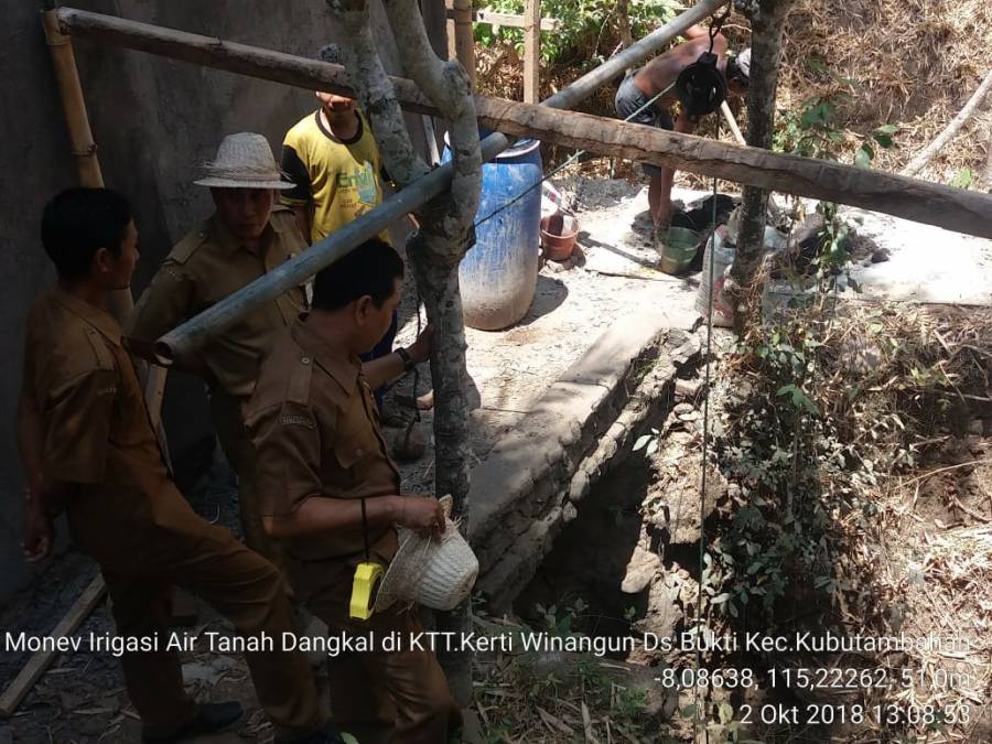 Monev selanjutnya dari Kegiatan APBD II yg dilaksanakan Kemarin Selasa, 2 Oktober 2018 adalah Irigasi Air Tanah Dangkal yg bersumber dana dari dana DAK Pertanian dengan anggaran Rp.133.798.900,,- yg pengerjaannya secara swakelola dari kelompok yg berlokasi di Kelompok Tani Ternak Kerti Wimangun Ds.Bukti Kec.Kubutambahan dari Kegiatan Pengadaan Sarana dan Prasarana Teknologi Pertanian/Perkebunan Tepat Guna (18.002).