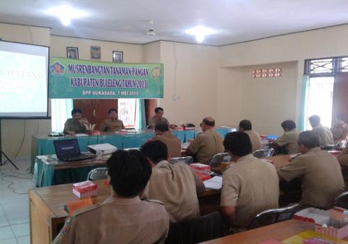 Musrenbangtan Tanaman Pangan di Kabupaten Buleleng dilaksanakan pada tanggal 7 Mei 2013 dengan nara sumber Kepala Dinas Pertanian dan Peternakan Kab.Buleleng, Kepala BAPPEDA Buleleng, Kepala Bidang Ekonomi dan Penanaman Modal BAPPEDA Buleleng, Kepala Bidang Produksi Padi dan Palawija DISTANAK Buleleng, diikuti oleh Koordinator Petugas Pertanian dan Peternakan Kecamatan, Mantri Tani Kecamatan se-Kabupaten Buleleng, Penyuluh Pertanian pada DISTANAK Kab. Buleleng