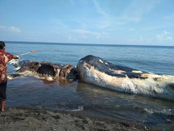 Bangkai paus dengan panjang sekitar 15 meter, berat sekitar sepuluh ton terdampar di Pantai Desa Bungkulan, Kecamatan Sawan, Kabupaten Buleleng, Bali. Terdamparnya paus ini menjadi tontonan warga setempat yang tinggal di dekat pantai tersebut. "Ratusan warga berdatangan untuk menyaksikan bangkai paus jenis berkelamin betina terdampar di pesisir Pantai Desa Bungkulan, Kecamatan Sawan, Kabupaten Buleleng, sekitar pukul 09.30 WITA," kata Kasat Pol Airud Polres Buleleng, AKP I Putu Aryana di Singaraja, Senin (19/3). Ia mengatakan, ikan paus sperma dalam ukuran raksasa itu menjadi tontonan masyarakat. Masyarakat setempat tidak berhasil menyelamatkan atau mengevakuasi mamalia ukuran besar tersebut. Penemuan bangkai paus sperma dengan kulit mengelupas dan isi perut terburai itu langsung direspons cepat oleh pihak kepolisian dan pemerintah kabupaten setempat. Menurut hasil pemeriksaan luar yang dilakukan dari Dinas Perikanan Kabupaten Buleleng bersama Iwan Setia Budi selaku dosen Undiksha Singaraja, bahwa diperkirakan ikan paus sperma tersebut sudah mati seminggu yang lalu." paus ini mati sudah seminggu lalu. Bisa dilihat pada bagian perut ikan paus terbuka, hancur terburai. Kemungkinan, perut paus terburai dimakan ikan hiu," ujar AKP I Putu Aryana. Pihaknya akan segera bertindak cepat untuk menarik bangkai ikan paus sperma itu ke tengah laut untuk kemudian ditenggelamkan. Menanggapi keresahan masyarakat lokal, lantaran bau menyengat yang ditimbulkan dari bangkai mamalia raksasa atau ikan paus sperma itu, pihak terkait rencananya akan segera menarik bangkai ikan paus sperma itu ke tengah laut. Kasat Pol Airud Polres Buleleng, AKP I Putu Aryana membenarkan rencananya bangkai paus itu akan ditarik dan ditenggelamkan ke tengah laut dengan bantuan perahu nelayan. "Sejumlah penduduk lokal merasa resah dan terganggu aktivitasnya dengan bau amis yang cukup menyengat dari bangkai ikan paus tersebut.