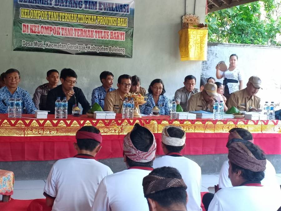 Kegiatan BPP Gerokgak. Hari ini Senin, 20 Mei 2019 melaksanakan kegiatan Lomba Kelompok Tani Ternak Tingkat Propinsi Bali. Kelompok tani ternak Tulus Bakti desa Musi Kecamatan Gerokgak juara I lomba tingkat Kabupaten Buleleng tahun 2018 mewakili Kabupaten Buleleng pada lomba tingkat Prolinsi tahun 2019. Tim evaluasi tingkat propinsi Bali yang hadir adalah Kabid PSP Disnskkes selaku ketua. Beserta anggota diantaranya dari BPTP Propinsi Bali. Sedang dari Kabupaten dihadiri bpk plt Kadis Pertanian Kab. Buleleng dan ketua Tim Pembina lomba tk kab. Buleleng dalam hal ini adalah Kabid Penyuluhan dan sekdi lingkup bidang penyuluhan. Turut hafir undangan dari Camat gerokgak, perbekel ds. Musi, kelian ds. Pekraman Musi, kelian Banjar dinas Madan, ketua Gapoktan, kelian subak sawah dan subak abian, ketua ktua kelompok ternak se ds. Musi serta pengurus dan anggota kelompok tani ternak ds. Tulus Bakti ds. Musi. Pada sambutannya blk kadis memaparkan bhw Kabupaten Buleleng khususnya Kecamat.