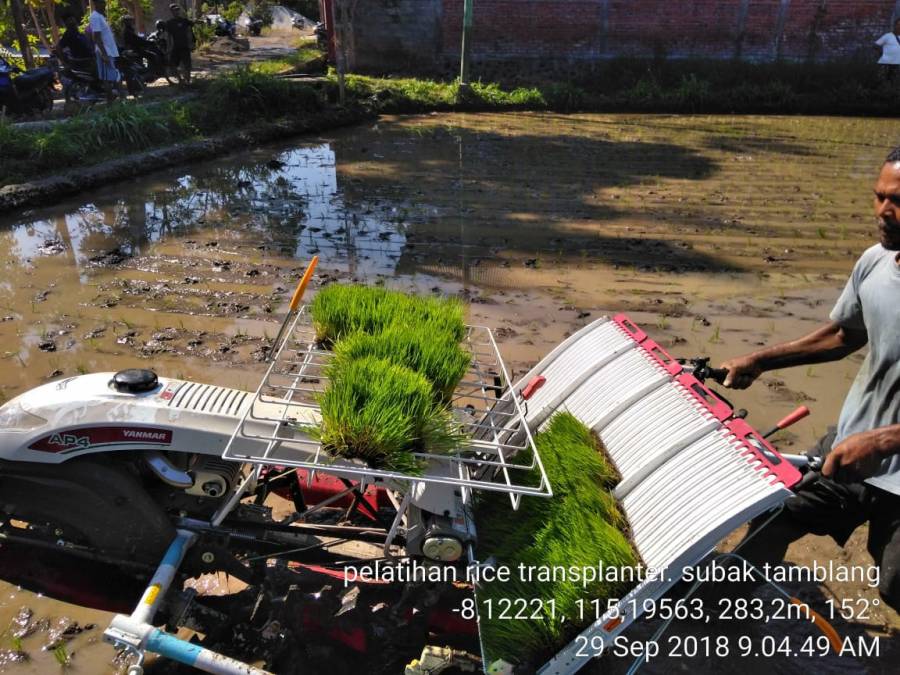 Pelatihan ALSINTAN (Alat Mesin Pertanian) Rice Transplanter di Subak Tamblang kegiatan ini dilaksanakan Sabtu (29/9). Kegiatan ini dihadiri oleh Kasi Pupuk Pestisida dan Alsintan Ir. Nyoman eli sunaryani beserta Staff Tenaga Teknis, Babinsa wilayah Ds. Kubutambahan, Ketua Subak Tamblang beserta anggota.