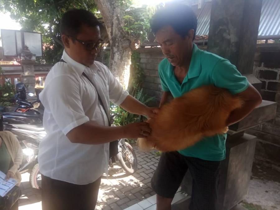 Rabies adalah suatu penyakit menular yang disebabkfan oleh virus yaitu virus rabies yang menyerang sistem saraf pusat. Penyakit hewan yang dapat menular kemanusia. Hewan yang paling sering menular adalah anjing sehingga di indonesia disebut anjing gila. Rabu 12 Desember 2018 terdapat masyarakat yang datang ke bpp sawan untuk melakukan vaksinasi rabies.masyarakat yang melakukan vaksinasi anjing yang di tangani langsung oleh petugas rabies bbp sawan dan petugas bpp sawan yaitu warga desa kerobokan kecamatan sawan yang divaksin anjing ras.