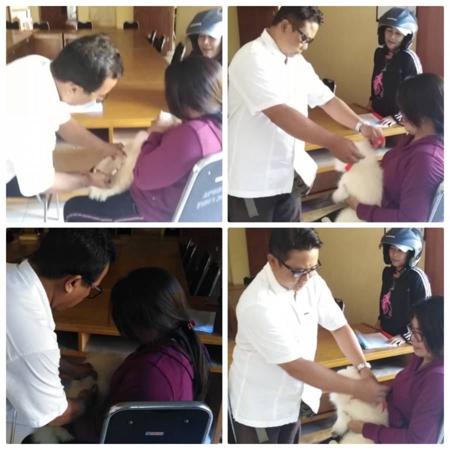 Rabies adalah suatu penyakit menular yang disebabkan oleh virus yaitu virus rabies yang menyerang sistem saraf pusat. Penyakit hewan yang dapat menular kemanusia. Hewan yang paling sering menular adalah anjing sehingga di indonesia disebut anjing gila. Rabu 29 mei 2019 masyarakat yang datang ke bpp sawan untuk melakukan vaksinasi rabies.masyarakat yang melakukan vaksinasi anjing yang di tangani langsung oleh dokter hewan kec. Sawan yaitu 2 ajing milik ibu lita warga pulau nila desa penarukan kecamatan buleleng yang divaksin anjing ras.
