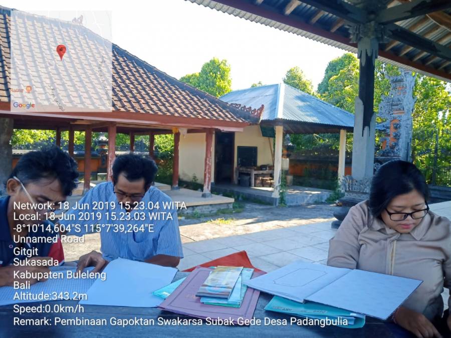 Selasa, 18 Juni 2019 dilakasanakan kegiatan pembinaan Gapoktan Swakarsa untuk memantapkan kesiapan berkas administrasi untuk evaluasi yang akan dilaksanakan pada tanggal 21 Juni 2019, kegiatan ini bertempat di Pura Subak Gede Padangbulia Desa Padangbulia. Kegiatan pembinaan ini dihadiri oleh PPL Wilbin Padangbulia serta beberapa staff BPP Sukasada, dan pengurus Gapoktan Swakarsa.