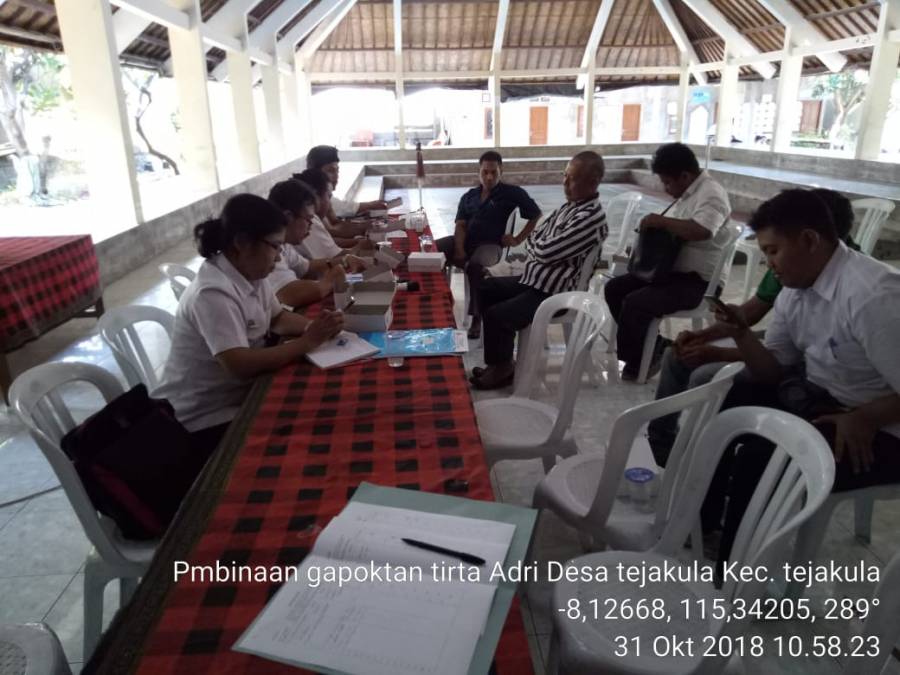 Pembinaan GAPOKTAN Tirta Adri Ds. Tejakula Kecamatan Tejakula oleh Kasi Pembiayaan I Ketut Suwartana S.Pt besama staff Bidang Prasarana dan Sarana Pertanian Dina Pertanian Kabupaten Buleleng Rabu (31/10) yang bertempat di Aula kantor Desa Tejakula. Pembinaan GAPOKTAN Tirta Adri Ds. Tejakula Kecamatan Tejakula oleh Kasi Pembiayaan I Ketut Suwartana S.Pt besama staff Bidang Prasarana dan Sarana Pertanian Dinas Pertanian Kabupaten Buleleng Rabu (31/10) yang bertempat di Aula kantor Desa Tejakula.