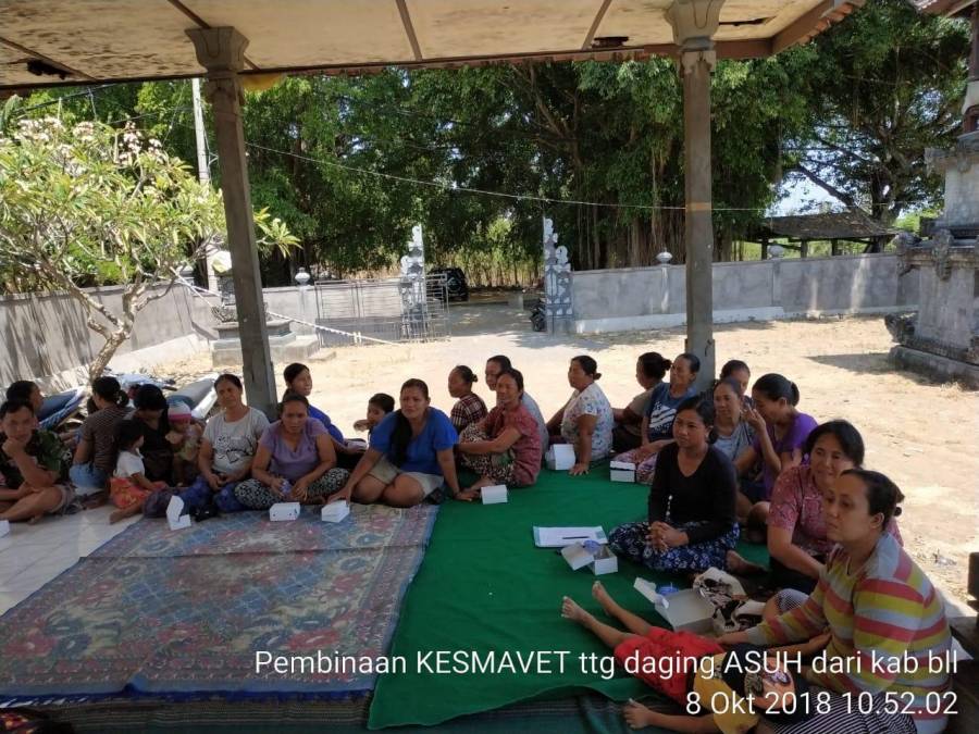 Senin, 8 Oktober 2018 telah berlangsung kegiatan pembinaan Kesmavet (Kesehatan Masyarakat Veteriner) di KWT (Kelompok Wanita Tani) Mekar Sari Desa Banyupoh terkait daging ASUH (Aman, Sehat, Utuh, Halal) yang dihadiri oleh Kasi Plt Kesmavet Bidang Keswan Dinas Pertanian Buleleng, Dokter Hewan BPP Gerokgak dan PPL wilbin.
