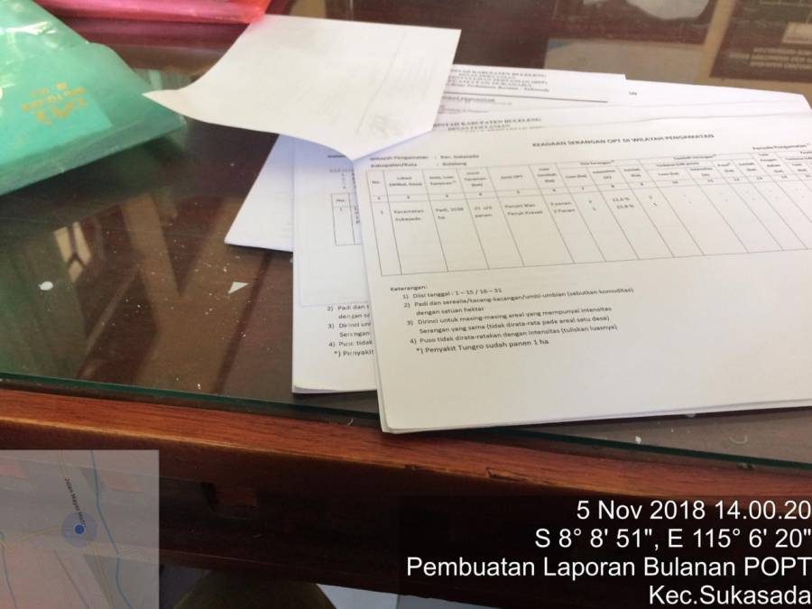 Dan Salah satu cara pelaksanaan komunikasi dari pihak yang satu kepada pihak yang lainnya. Dalam pelaporan bulanan POPT Kec. Sukasada dibagi ,menjadi 2 (dua) tahap yaitu ; laporan tengah bulan dari tanggal 1-15, dan laporan bulanan 16-30 setiap bulannya. dalam pelaporan tengah bulanan menyangkut pelaporan : Keadaan serangan OPT di wilayah pengamatan, luas pengendalian OPT di wilayah pengamatan,keadaan OPT pada petak pengamatan tetap, laporan kerusakan tanaman akibat bencana alam ( banjir dan kekeringan) dan laporan bulanan menyangkut keadaan serangan OPT di wilayah pengamatan, luas pengendalian, keadaan OPT pada petak tetap (diamati perminggu), laporan kerusakan tanaman akibat bencana alam (banjir dan kekeringan)laporan kumulatih luas tambah tanam padi dan keadaan curah hujan. dalam setiap pelaporan POPT Kec. Sukasada wajib diketahui oleh Koordinator Bpp Kec. Sukasada. pelaporan tengan bulan maupun bulanan akan di kirim atau ditujukan ke Bapak Kepala Dinas Pertanian Kab. Buleleng, Mantri Tani Kec.Sukasada, Kepala UPT BPTPH Bali Di Celuk, dan Arsip.