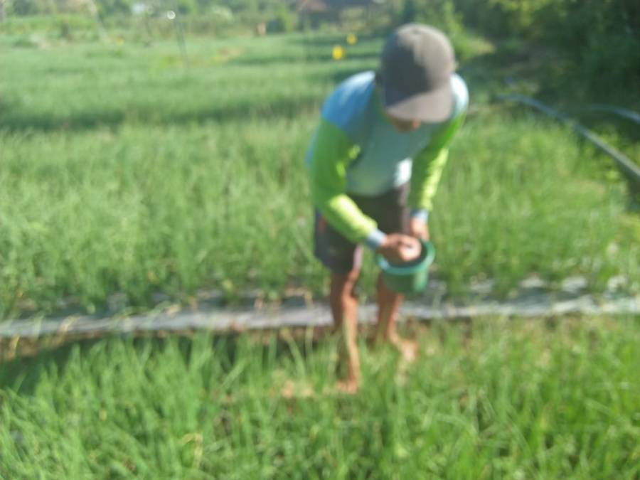 Dalam pemupukan kali ini, pupuk yang digunakan yaitu pupuk NPK dengan dosis 125 kg/Ha. Umur tanaman bawang merah pada saat pemupukan ke 2 ini yaitu 36 hst. Fisik tanaman pada saat ini yaitu dalam fase pembentukan umbi.