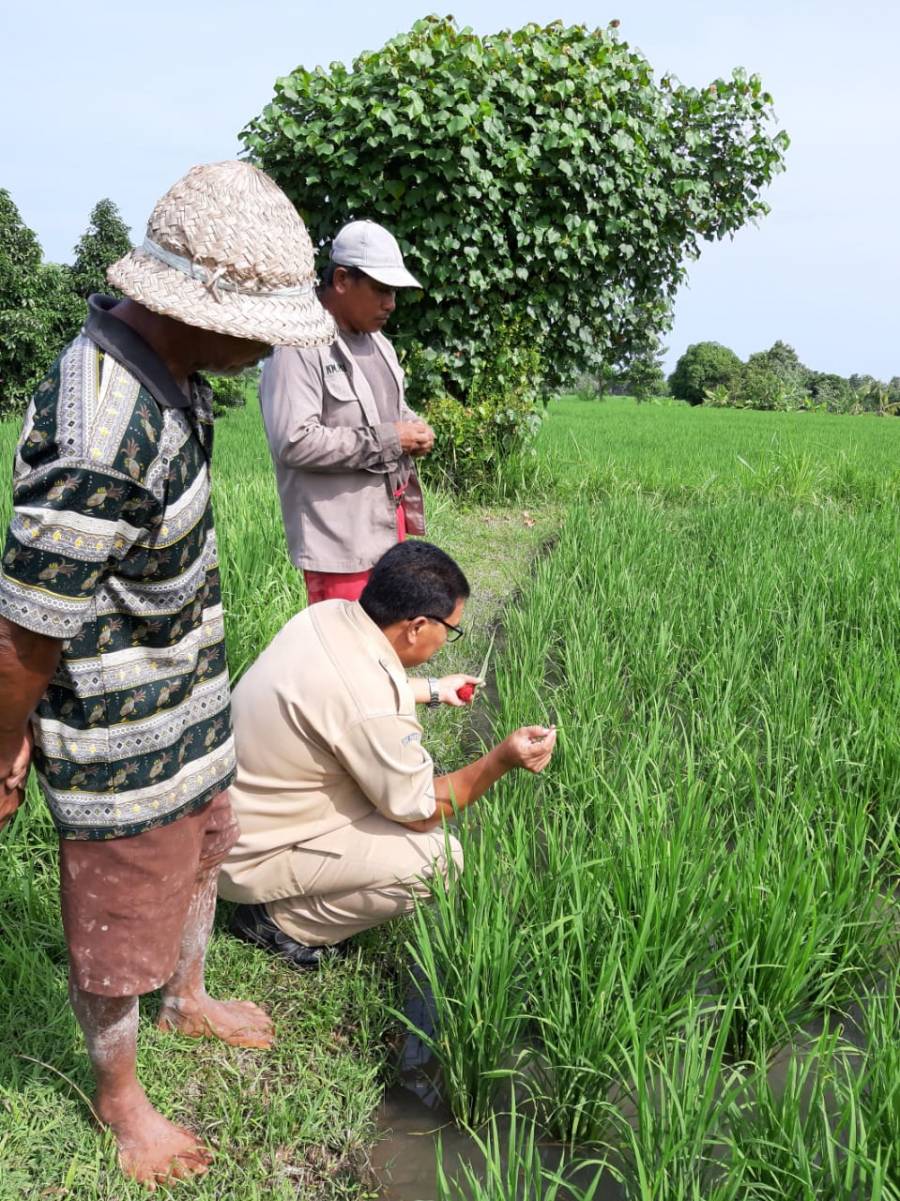 Senin 11 Februari 2019, dilaksanakan pengamatan serangan OPT di Subak Anyar Penglatan Kecamatan Buleleng. Mengingat pada saat sekarang ini adalah musim hujan maka tingkat kelembaban dilahan cukup tinggi sehingga penyakit yang disebabkam oleh jamur bisa menyerang tanaman padi. Tujuan kegiatan pengamatan ini adalah untuk memeriksa apakah ada serangan opt pada tanaman padi. Kemudian juga diberikan sosialisasi kepada petani terkait dengan cara mengatasi serangan opt tersebut. Diharapkan kedepannya petani dapat mengatasi serangan opt jika terjadi serangan. Selain itu harapan dari petani juga agar serangan opt pada musim sekarang ini tidak terlalu besar.