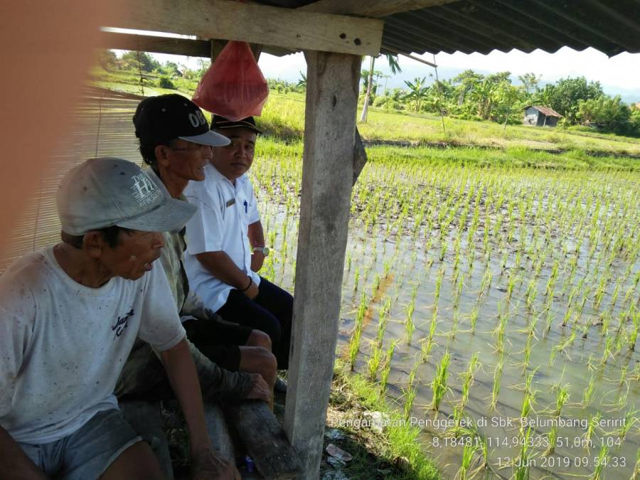 Rabu 12 Juni 2019, Kasi Perbenihan dan Perlindungan Tanaman Pangan, Bapak Putu Naya, SP. Bersama dengan POPT Kecamatan Seririt, melakukan pengamatan keliling di Subak Belumbang, Kecamatan Seririt. Pengamatan dilakukan pada 13 Ha tanaman padi Varietas Ciherang umur 14 – 24 HST. Ditemukan populasi penggerek batang 1 kelompok telur/ meter persegi, luas serangan 1 Ha dengan intensitas 9,3 % serta luas waspadanya mencapai 12 Ha. Untuk musuh alami ditemukan populasi musuh alami laba-laba 2 ekor laba2/ meter persegi.