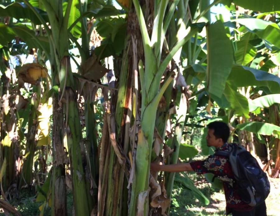 Kegiatan rutin ini didampingi oleh PPL Patas dan ketua kelompok tani naga sari. Dalam pengamatan kali ini terlihat ada beberapa tanaman pisang yang terkena penyakit layu fusarium.