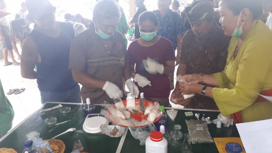 Atas dasar itu Penyuluh Kabupaten (Ketut Sumantia,SP) yang didampingi oleh Petugas dari UPTD Laboratorium DISTPHBUN Propinsi Bali, memberikan praktek pembuatan APH (Agensia Pengendali Hayati), yang menggunakan Insolat Tricoderma, dengan bahan dasar air dicampur gula aren atau air kelapa muda. Campuran tersebut di fermentasi atau digoyangkan selama seminggu. Hasil dari fermentasi itulah yang nantinya akan digunakan sebagai pestisida nabati untuk menggempur jamur akar putih yang menyerang tanaman cengkeh.