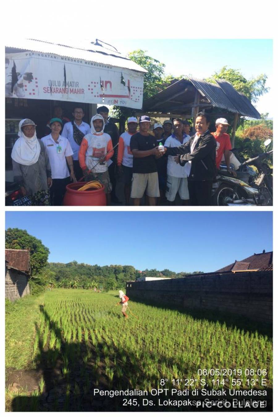 Rabu, 8 Mei 2019 dilaksanakan kegiatan pengendalian OPT padi, yaitu hama penggerek batang tanaman padi yang berlokasi di Subak Umedesa 245, Desa Lokapaksa. Kegiatan tersebut dihadiri oleh POPT, PPL wilbin beserta beberapa anggota subak. Kegiatan pengendalian OPT penggerek batang padi dilakukan dengan pengaplikasian insektisida sistemik ke lahan sawah yang terkena serangan.