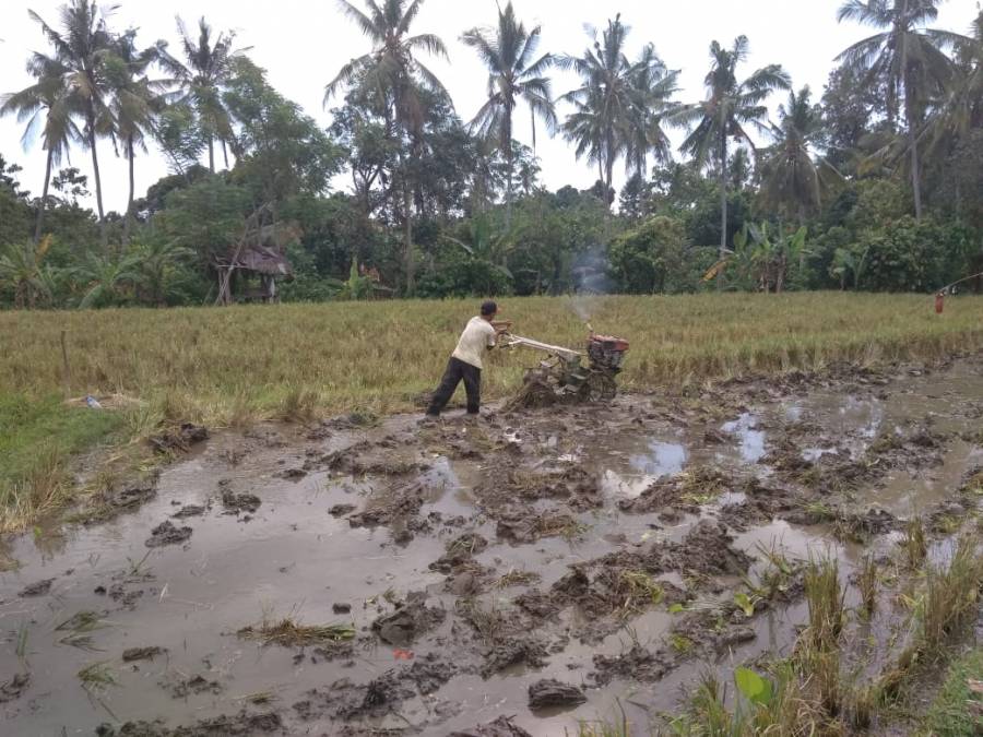 Rabu, 29 Mei 2019, kegiatan pengolahan lahan di Subak Pemuhunan, Desa Alasangker, Kecamatan Buleleng, oleh krama subak Pemuhunan. Alsintan yang digunakan untuk kegiatan pengolahan lahan adalah traktor roda dua.